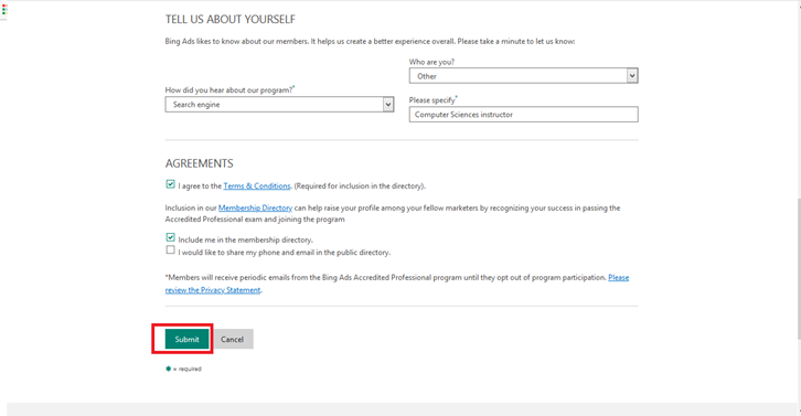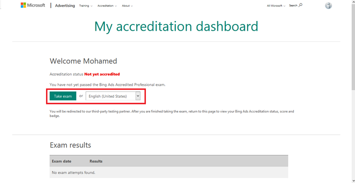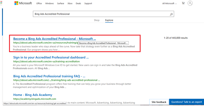 اسم الشهادة :  Bing Ads Accredited Professional (المتخصص في إعلانات Bing)