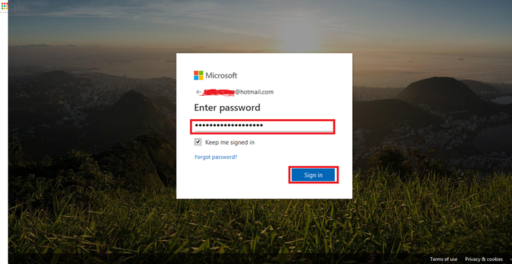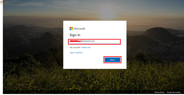 بعد ذلك سوف تظهر لك صفحة الولوج لحسابك على موقع ميكروسوفت كالتالى وليس عليك سوى كتابة البريد الإلكترونى والضغط على كلمة next ثم كتابة كلمة المرور والضغط على sign in كما هو موضح بالصور التالية