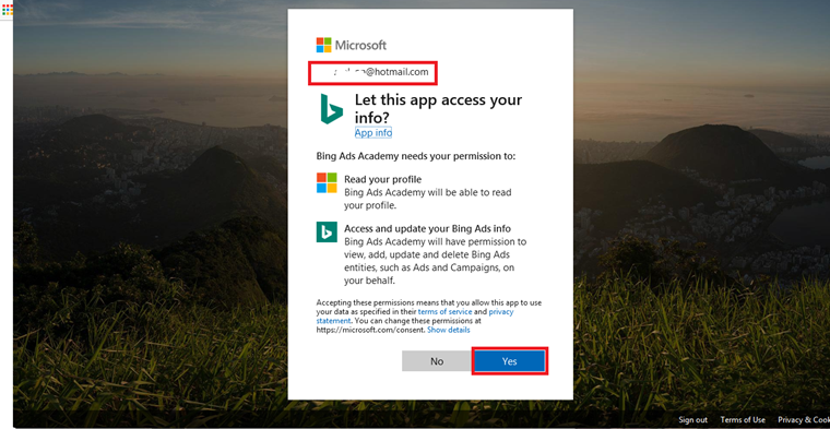 بعد ذلك سوف تظهر لك الصفحة التالية لتؤكد على إتمام عملية الدخول لحسابك اضغط على yes اسفل الصفحة كما هو موضح بالصورة التالية