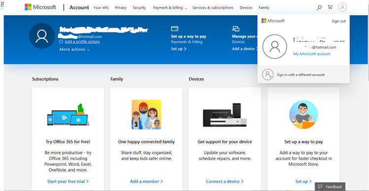 الآن ستظهر لك صفحة حسابك الشخصى على موقع ميكروسوفت كالتالى