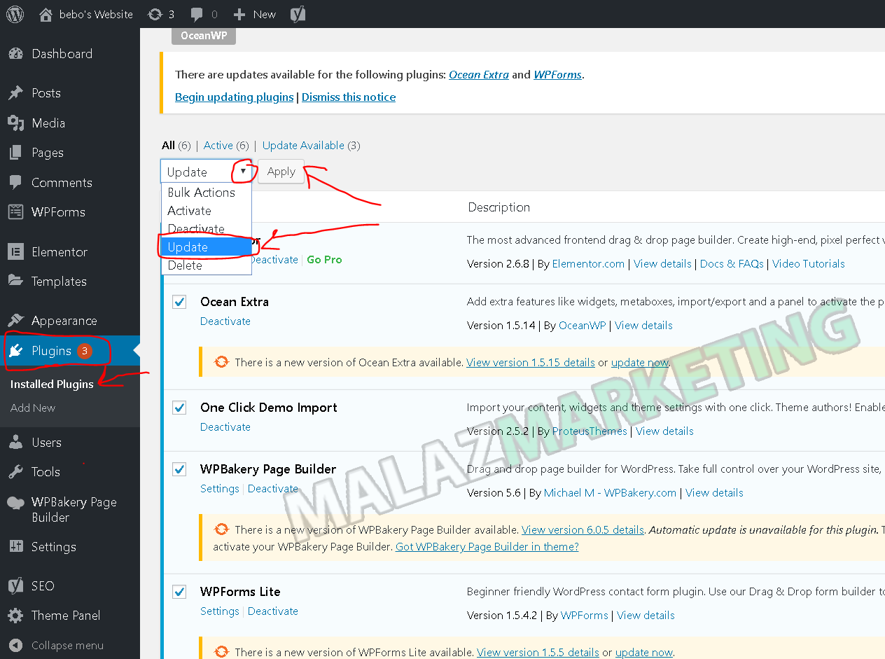 اول خطوة هي ان نقوم بتحديث الوردبريس الخاص بالموقع والاضافات, والسبب هو ان بعض الباحثون الامنيون يكتشفون الثغرات في بعض الاضافات بسبب غلطات برمجية وتختلف هذه الثغرات من ثغرة لأخرى واخطرهم هي الثغرات التي تمكن المخترق من رفع ملفات على السيرفر الخاص بك, ولكن عند اكتشاف هذه الثغرات من قبل شركة الوردبريس وشركات الاضافات يقومون بالتعديل والاصلاح فورا ورفع التحديث الجديد الخالي من المشكلة لذلك التحديث مهم جدا.