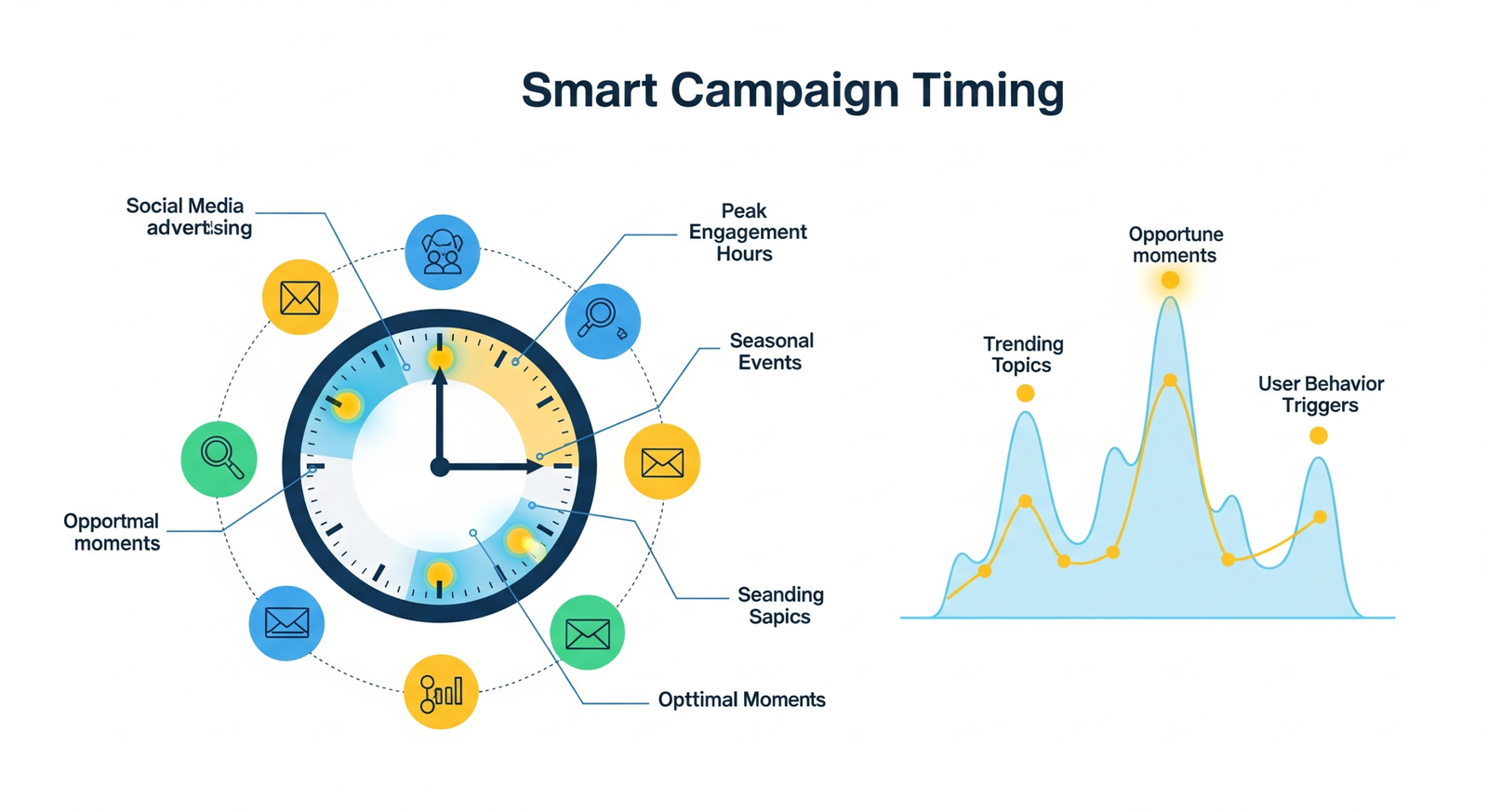 - ⏰ توقيت ذكي للحملات: نشر الإعلانات في اللحظة الأنسب لتفاعل الجمهور.