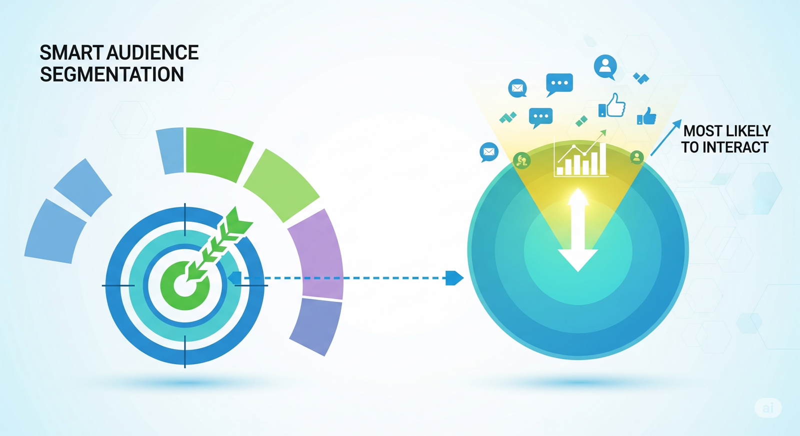 🎯 تقسيم الجمهور بذكاء: استهداف الشرائح الأكثر احتمالًا للتفاعل.